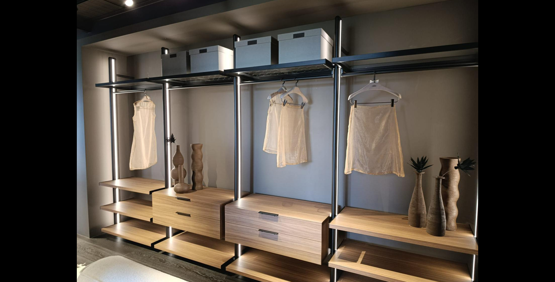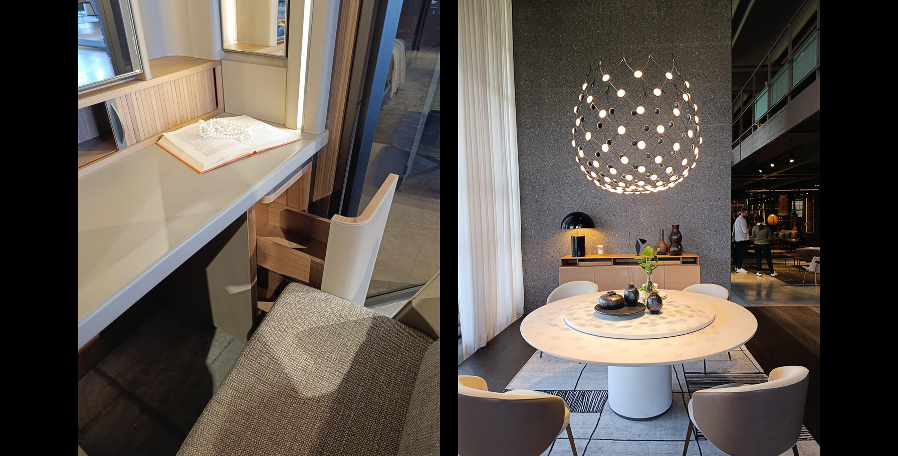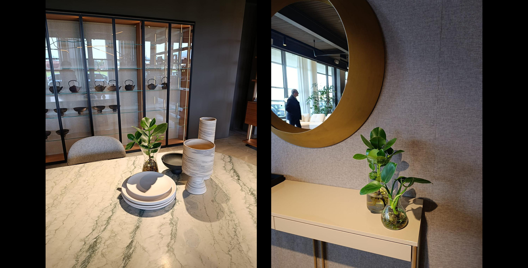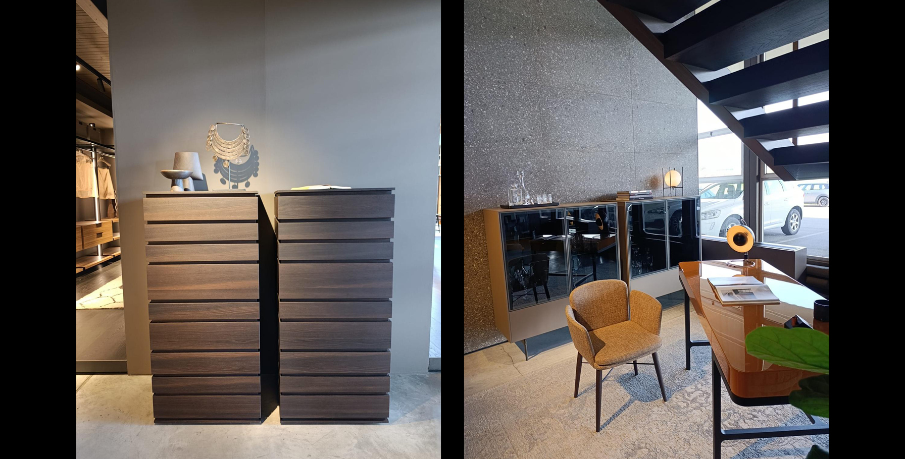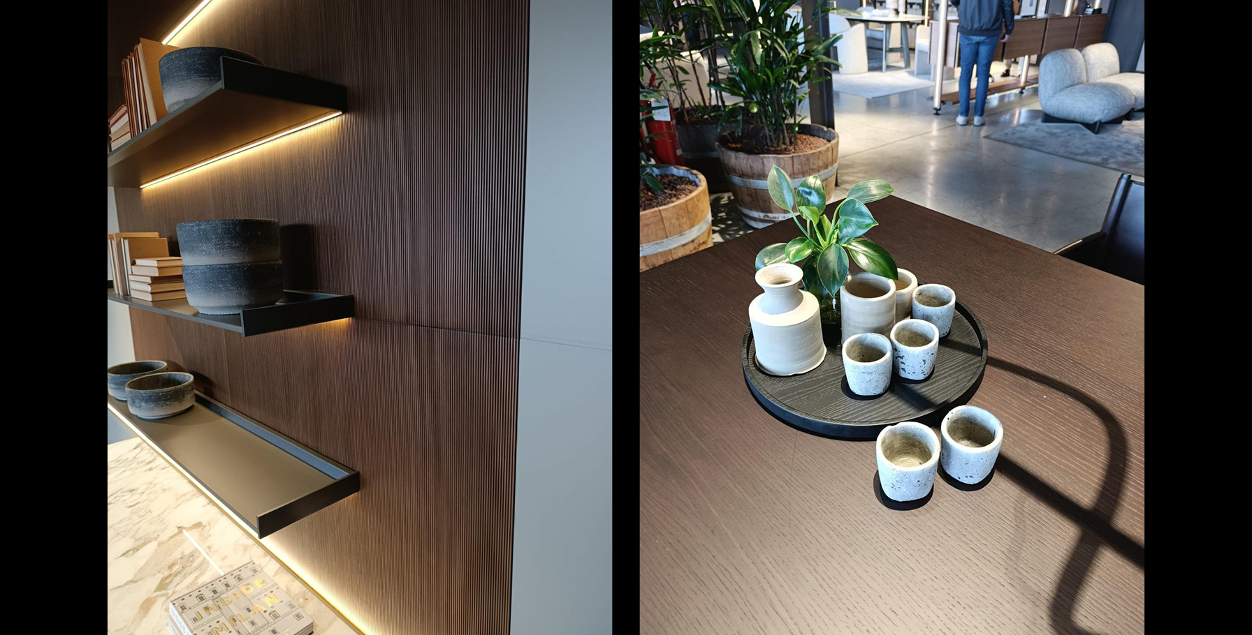Durante la visita i nostri arredatori hanno realizzato il reportage fotografico dell’esposizione all’interno dello showroom, con l’obiettivo di documentare le soluzioni compositive, i dettagli progettuali e l’identità estetica del brand, a supporto delle attività di progettazione e comunicazione.