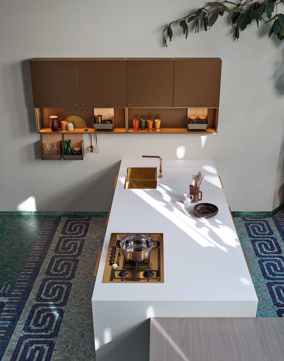 Permette contrasti di materiali (es. legno + marmo, colore + neutro)