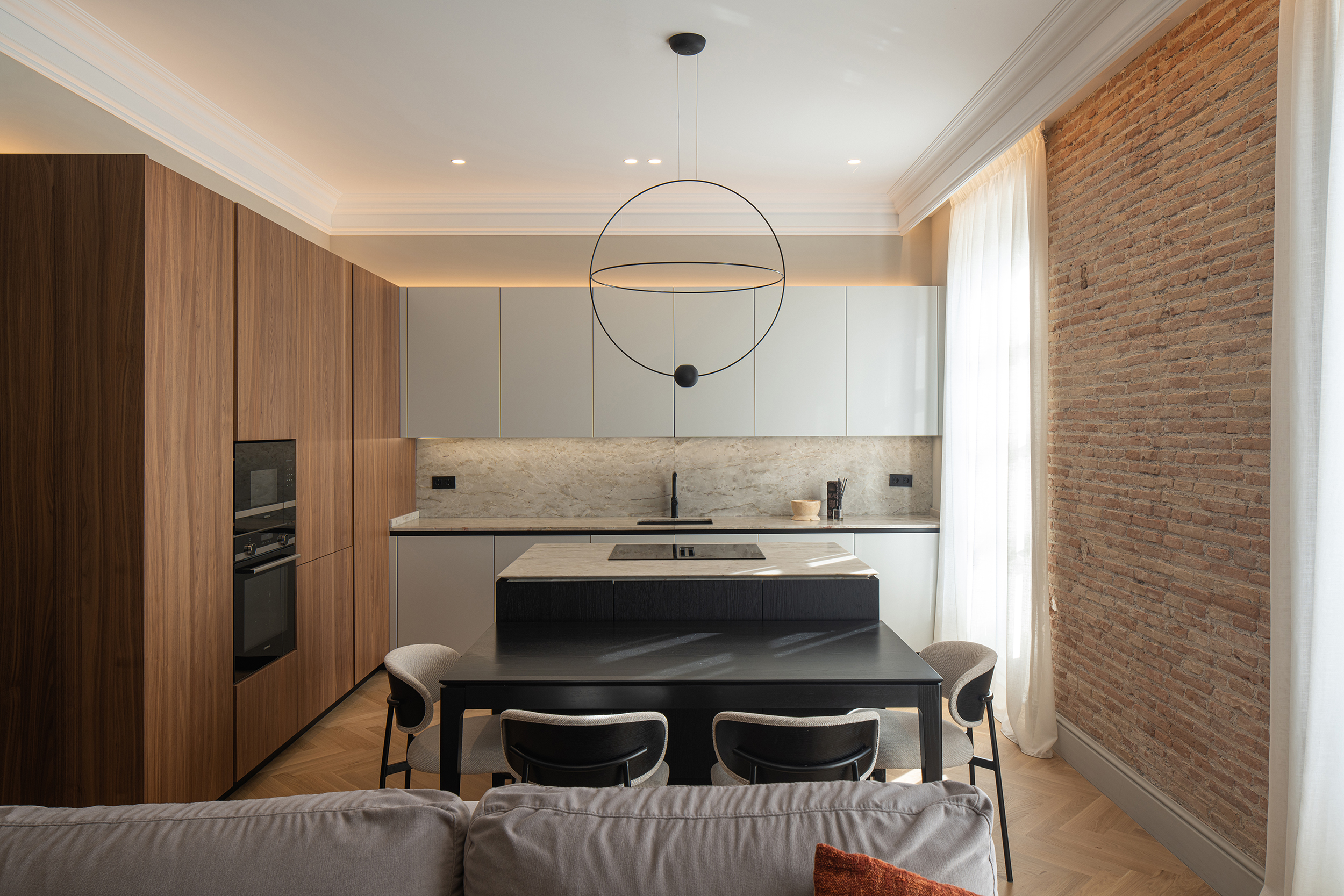 È una soluzione molto usata negli open space perché collega cucina e soggiorno.